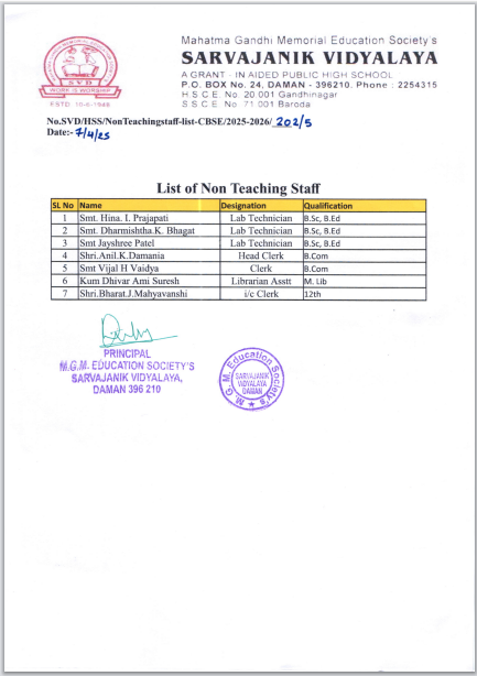 List of Non Teaching Staff